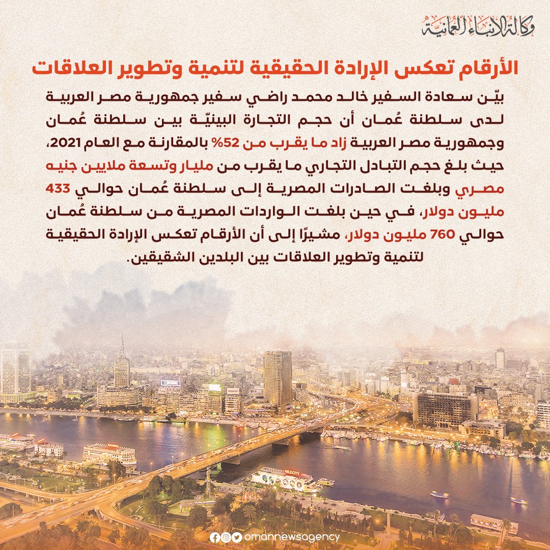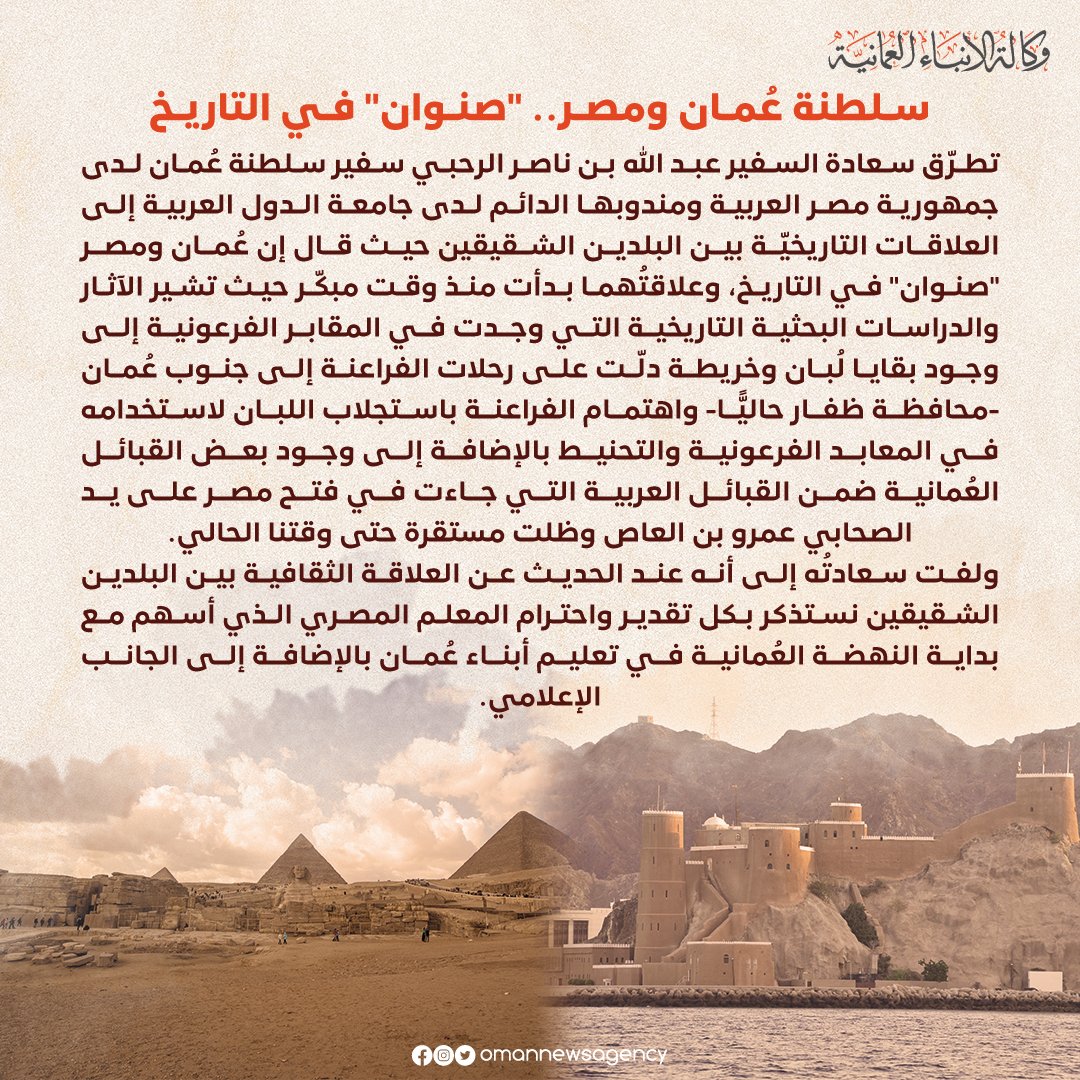 بمزيد من مشاعر السعادة والفخر والسرور والامتنان استقبل أبناء الجالية المصرية المقيمة بسلطنة عمان صباح يوم الأربعاء 17 مايو 2023م بيان صادر عن ديوان البلاط السلطاني ينص على زيارة تاريخية من مولانا حضرة صاحب الجلالة السلطان هيثم بن طارق المعظم – حفظه الله ورعاه إلى جمهورية مصر العربية بداية من يوم الأحد 21 مايو وتستمر لمدة يومين كاملين ، وتداول أبناء الجالية الخبر في جميع منصات التواصل الاجتماعي معربين عن مدى ترحابهم وسعادتهم بتلك الزيارة الميمونة مثمنين دور صاحب الجلالة وفخامة رئيسهم / عبدالفتاح السيسي – رئيس جمهورية مصر العربية في تعزيز العلاقات الأخوية بين البلدين المستمرة منذ فجر التاريخ والعلاقات الحديثة المستمرة منذ 5 عقود والتي ستعود عليهم بمزيد من الإيخاء والرخاء على أرض عماننا الحبيبة.