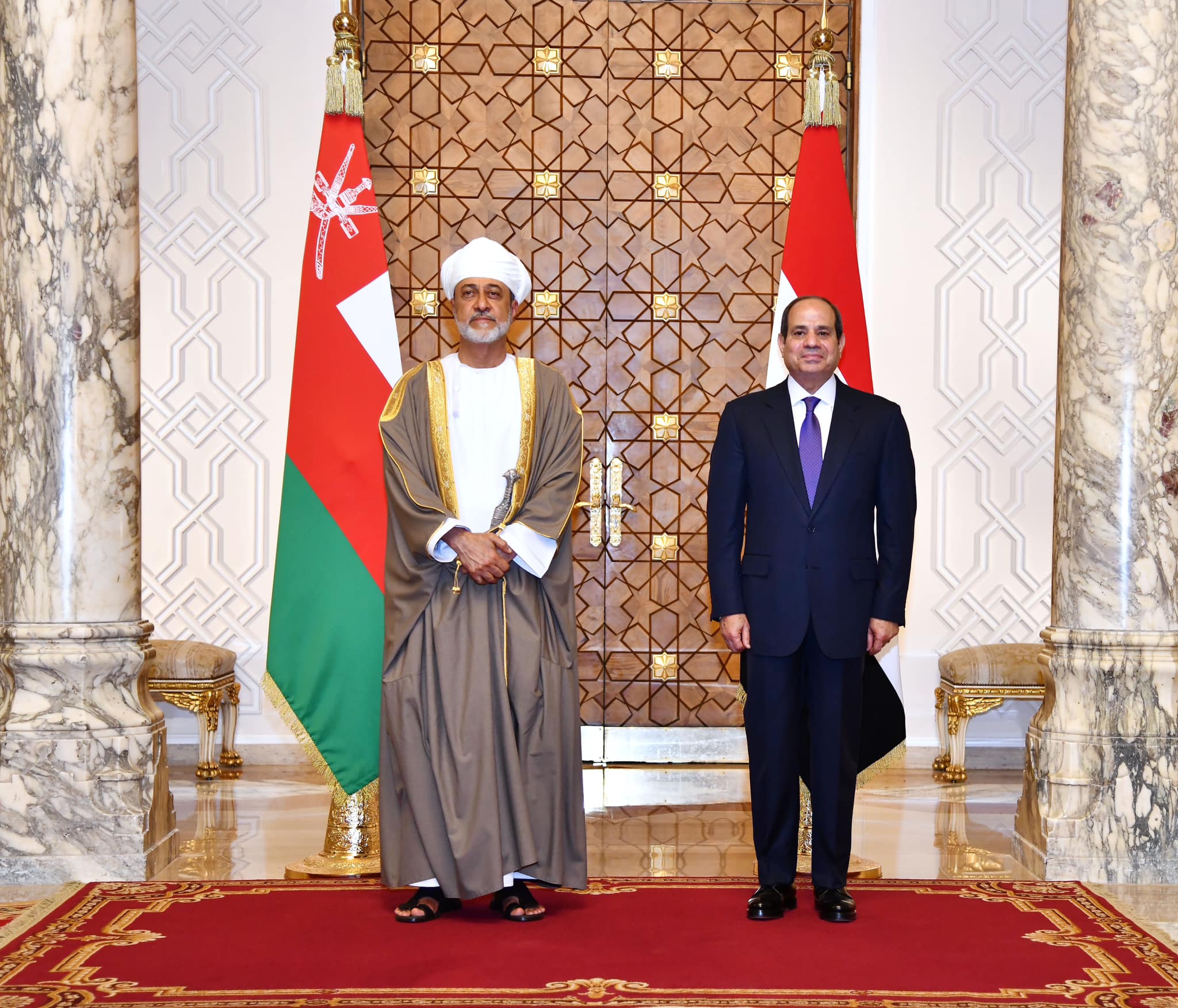 استقبل السيد الرئيس عبد الفتاح السيسي اليوم في قصر الاتحادية جلالة السلطان هيثم بن طارق آل سعيد، سلطان عمان، حيث أقيمت مراسم الاستقبال الرسمي وتم عزف السلامين الوطنيين واستعراض حرس الشرف.