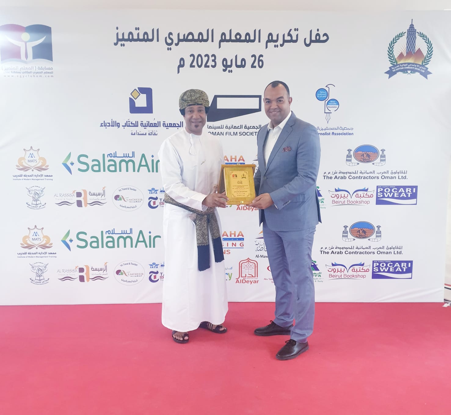 تألق مساء أمس نجما الحفل ومقدمينه المراسل التلفزيوني والإعلامي العماني / عيد الخويطري – مراسل قناة TRT بالعربي بسلطنة عمان في تقديم حفل تكريم المعلم المصري المتميز على مسرح الجمعية العمانية للسينما بمرتفعات المطار ،